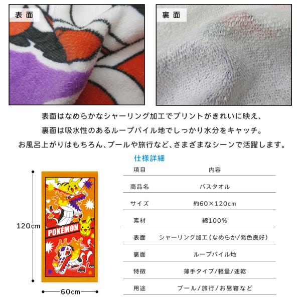 バスタオル ポケットモンスター ポケモン 60×120cm 綿100% キャラクター 保育園 幼稚園 小学生 湯上りタオル 男の子 女の子 かわいい bt1 メール便A