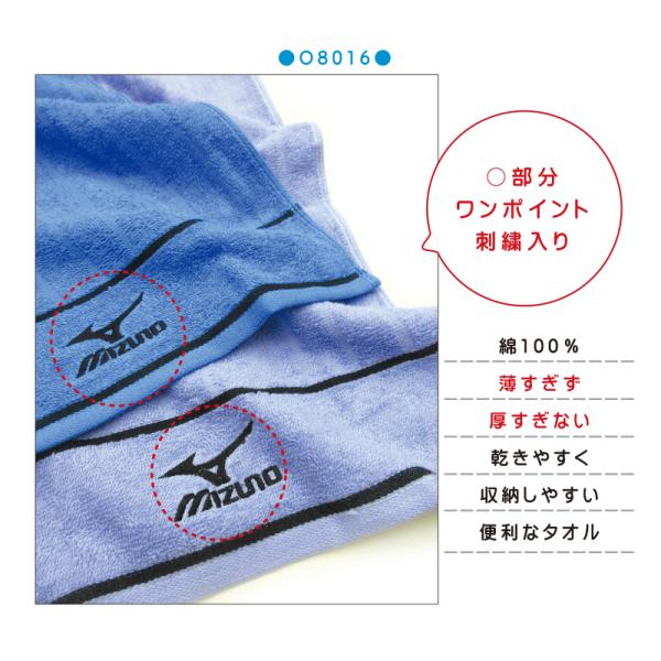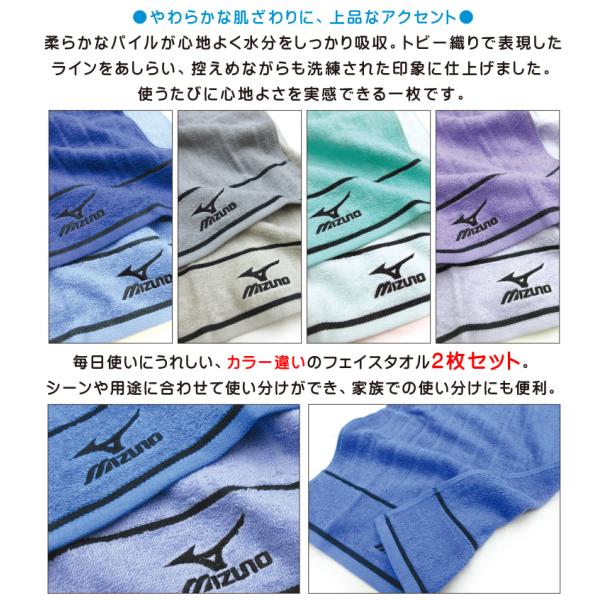フェイスタオル ミズノ mizuno 2枚セット 34×75cm 綿100% 両面パイル 後染めドビー 刺繍 O8016 スポーツタオル 部活 ジム 洗い替え ft2s fts メール便A