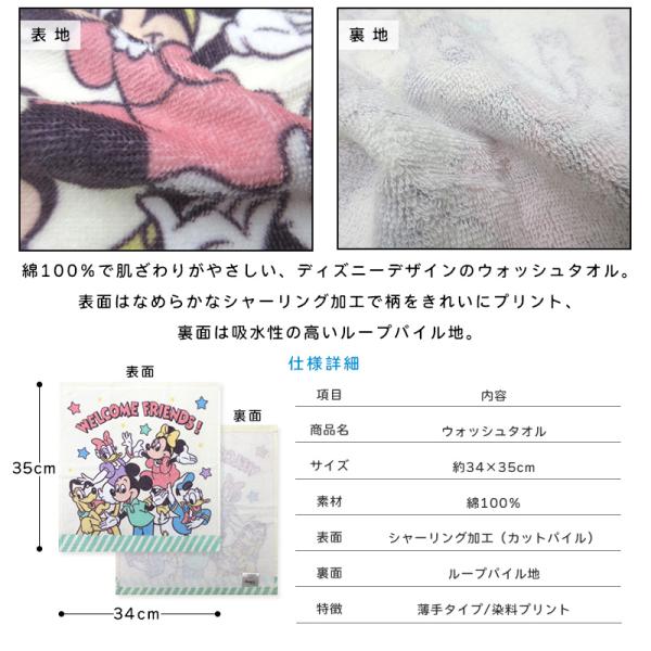 ディズニー ハンドタオル 34×35cm 綿100% キャラクター ミッキー ミニー トイストーリー ウォッシュタオル 保育園 幼稚園 小学生 wt1 メール便C