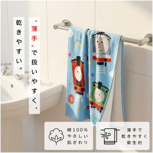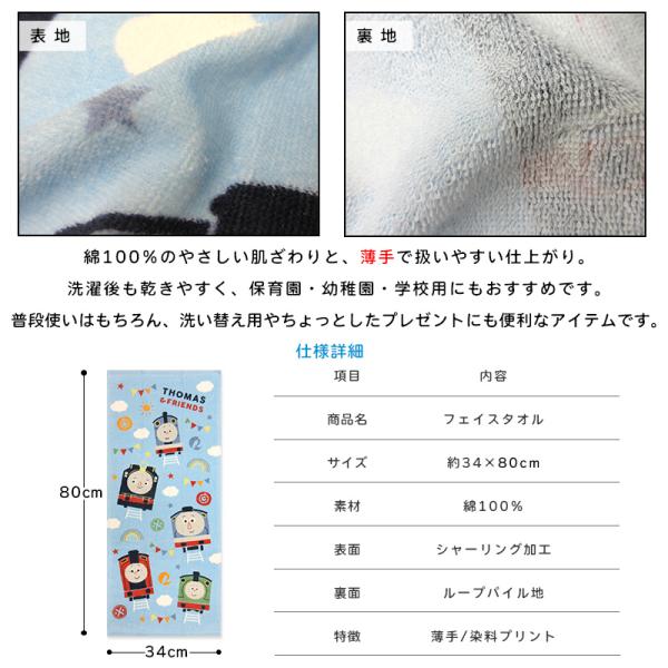 きかんしゃトーマス フェイスタオル 34×80cm 綿100% 表地 シャーリング加工 裏地 パイル地 キャラクター トーマス パーシー ジェームス ft1 メール便B