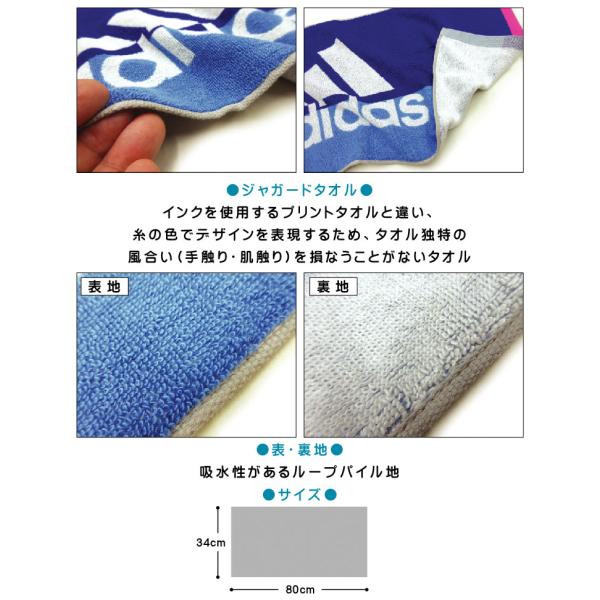フェイスタオル アディダス adidas 34×80cm 綿100% 両面パイル ジャガードタオル 抗菌防臭加工 プール アウトドア スポーツ ジョギング ft1s fts メール便B