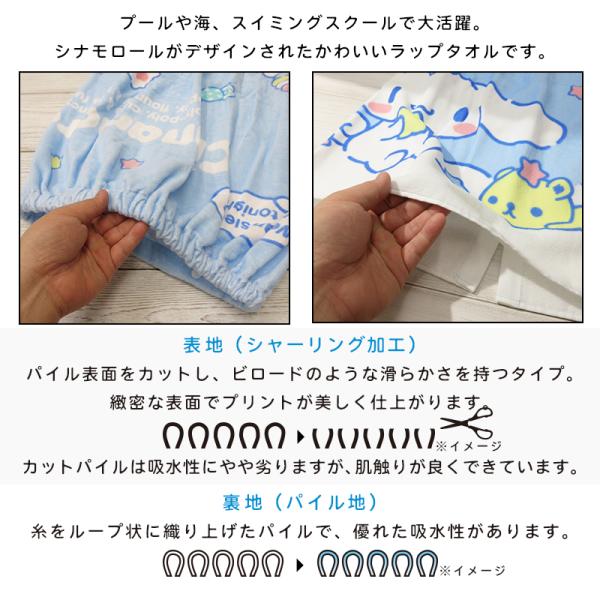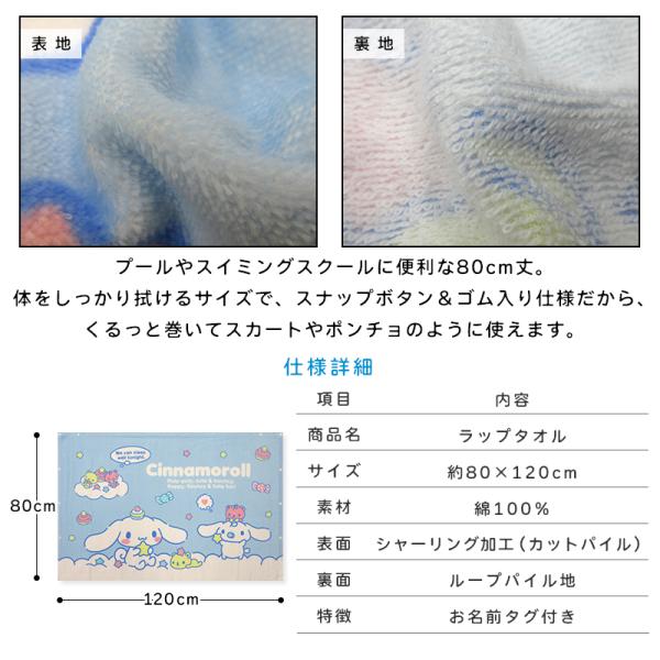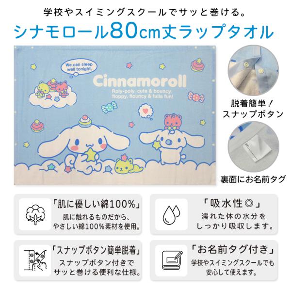 メール便送料無料 サンリオ シナモロール ラップタオル 80cm丈 綿100% ゴム入りギャザー ホック付き キャラクター ミルク キッズ 巻きタオル rp8