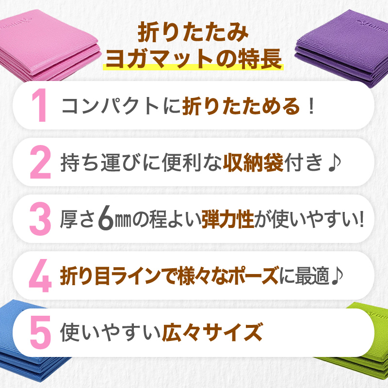 ヨガマット 折りたたみ 6mm PVC 収納ケース付き 厚手 エクササイズマット ホットヨガマット 初心者 コンパクト マット おしゃれ ストレッチマット ピラティス