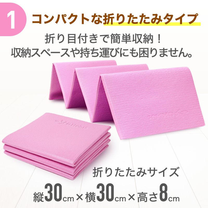 持ち運びがし易い折りたたみヨガマットは、ジムやスタジオに持っていくのにピッタリ。
