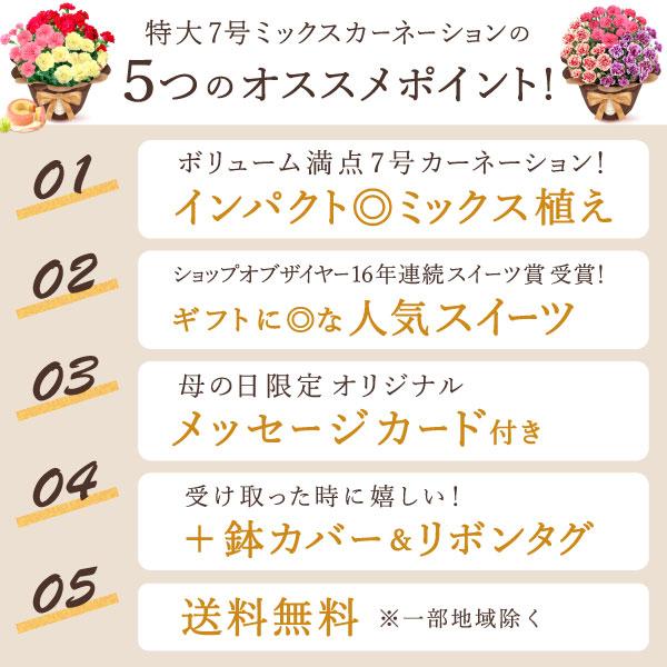 母の日 ギフト 花 プレゼント 早割 スイーツ 2026 カーネーション 鉢植え 母の日ギフト 花とスイーツ 豪華 特別 お菓子 7号 7色 60代 70代 80代