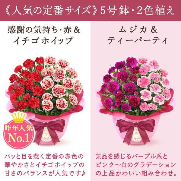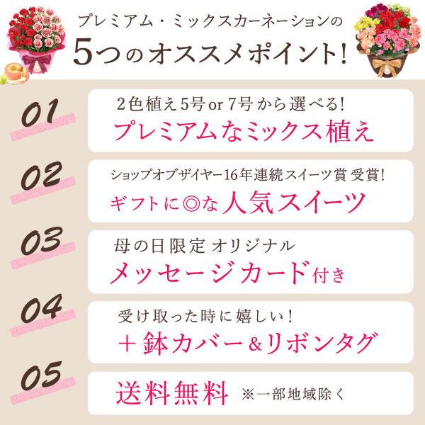 母の日 ギフト 花 カーネーション 2026 プレゼント 鉢植え 5号 2色植え お菓子 スイーツ 母の日ギフト 食べ物 セット 花とスイーツ 60代 70代