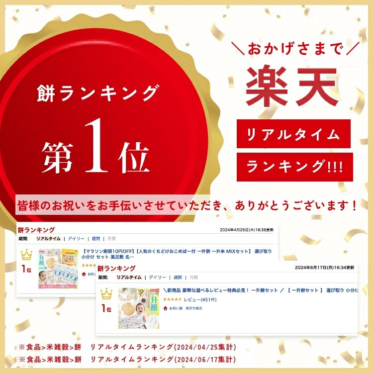 伝統的なお餅と日常使いができるお米、赤ちゃん用のお菓子をミックスした当店オリジナルの一升餅をご用意しました♪