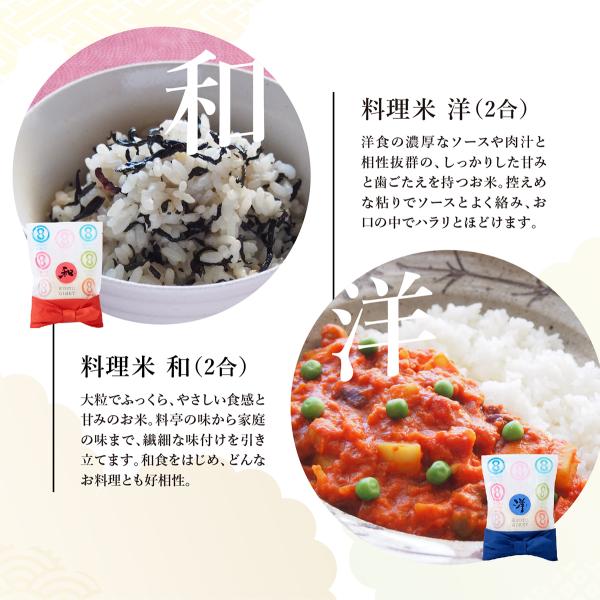 料理米から特に人気の6種類を詰合せ。肩肘を張らず、どんな方への贈り物にも最適な人気の価格帯。日本古来の雅な装束"十二単"にちなんで、色とりどりの和の風呂敷でお米を包みました。