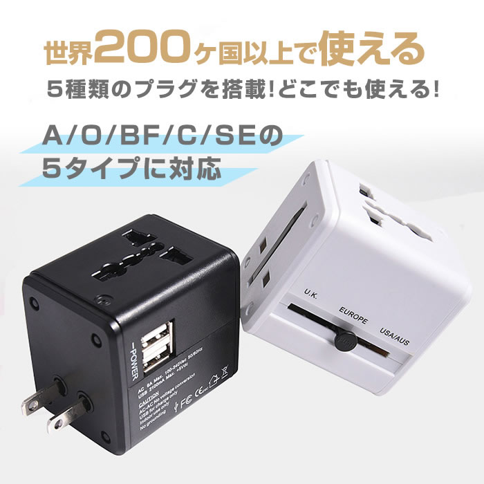 海外用変換プラグ 変換プラグ 海外 マルチ変換プラグ 海外旅行用 全世界対応 海外マルチプラグ 海外コンセント USB2ポート付 oタイプ cタイプ bfタイプ