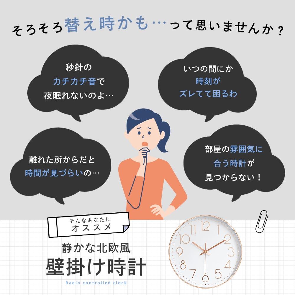 掛け時計 電波 静音 おしゃれ 北欧 壁掛け時計