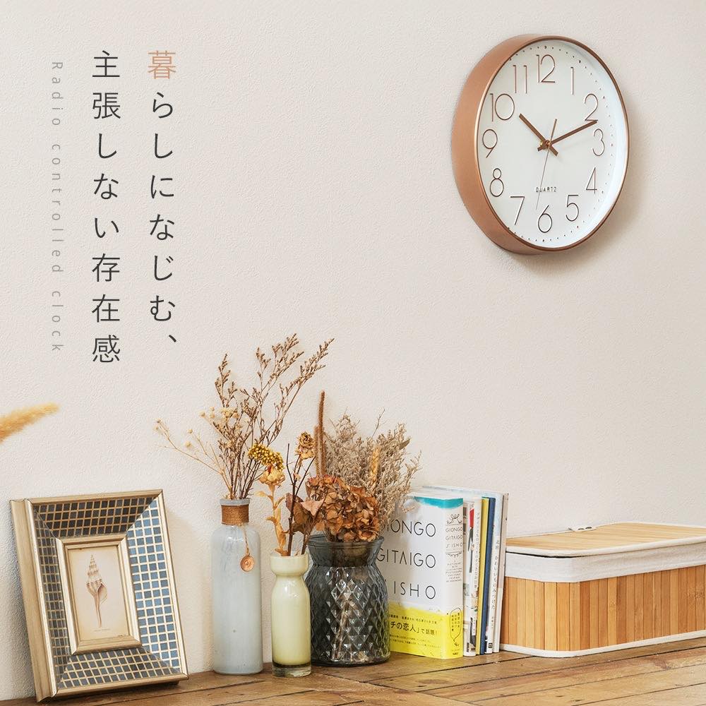 掛け時計 電波 静音 壁掛け 北欧 シンプル おしゃれ 見やすい 大きい 薄型 インテリア 寝室 リビング アナログ