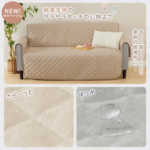 ソファーカバー 麻風 はっ水 キルト加工 滑り止め付き 洗える