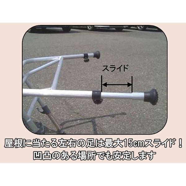 ・屋根に当る左右の足は最大15cmスライドするので凹凸のある場所でも安定します。