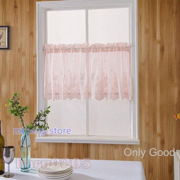 カフェカーテン レースカーテン 小窓用 遮光 目隠し カーテン ピンク レース 短い 透け感 おしゃれ カフェ屋 喫茶店 棚飾り キッチン窓 洗濯可 ショートカーテン