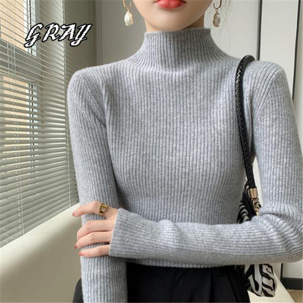 ニット レディース 冬 ハイネック タートルネック セーター リブニット 長袖 秋冬 秋 冬 トップス ボトルネック リブ 細身 タイト 無地 シンプル ベーシック