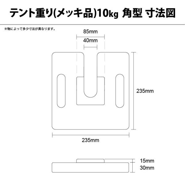 テント用重り メッキ品 10kg 角型 テント ウエイト 重り テントウエイト 風対策 鋳物