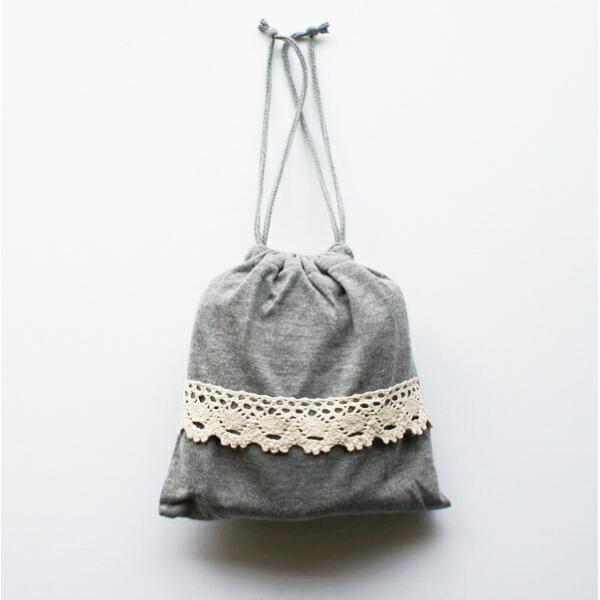 レースとボーダーがかわいい折り畳みスリッパ 巾着袋付き