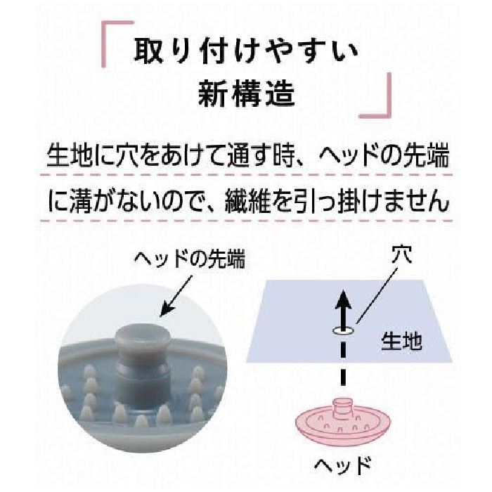■取り付けやすい新構造で、ヘッド先端に溝がなく繊維を引っ掛けにくい
