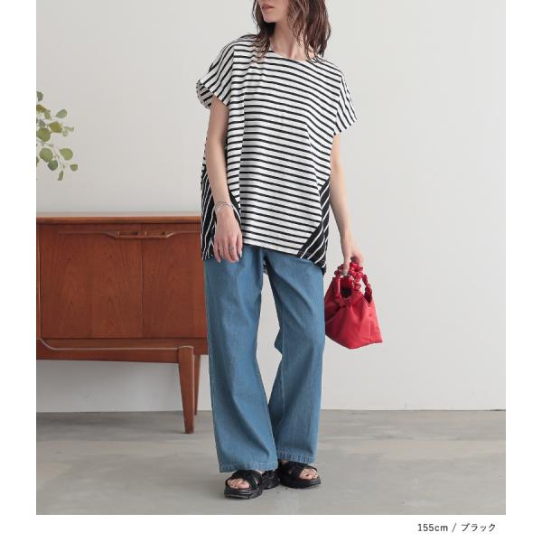 カットソー Tシャツ 半袖 レディース トップス フレンチスリーブ ボーダー柄 コットン100% 着回し 体型カバー 50代 春 夏 「メール便可」「10」