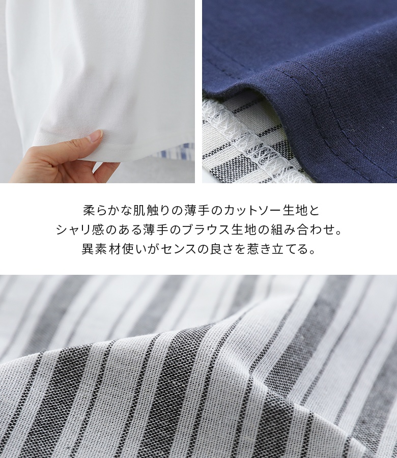 レディース 春夏 トップス Tシャツ シャツ ストライプ 半袖 レース『プリント×ストライプTシャツ』 「メール便可」「5」
