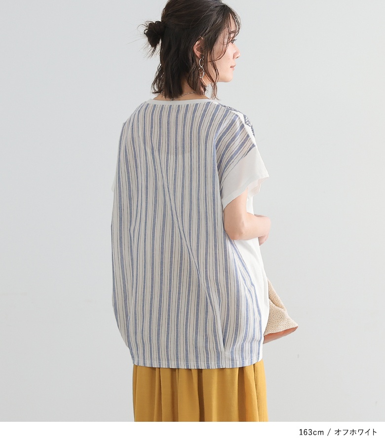 風合いレースプリント×ストライプTシャツ