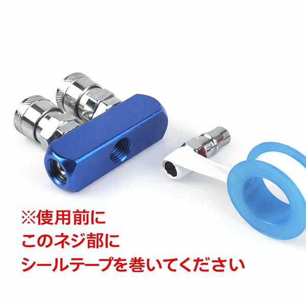 アルミ削りだしの分岐ジョイント+1/4"メスカプラー(2個)+1/4"オスカプラー(1個) <br>
