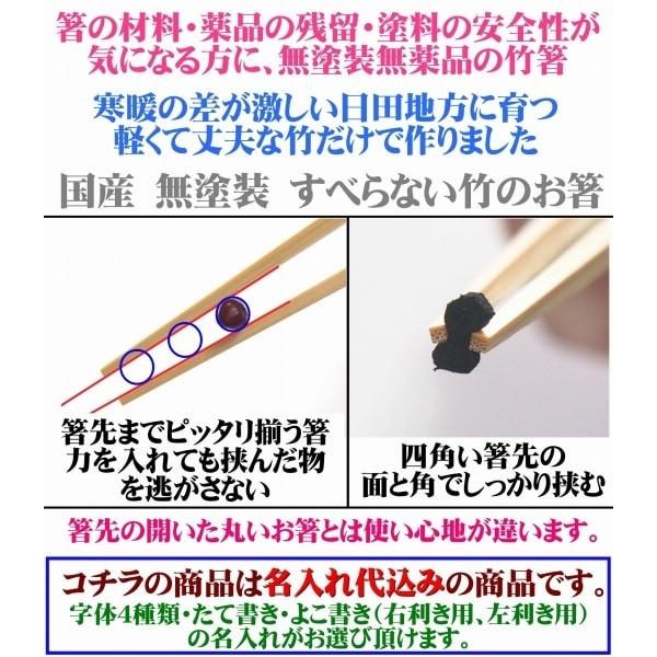 箸 21cm 名入れ 材料まで日本製 無垢 すべらない竹箸 女性用 お試し価格のお箸 名前入り