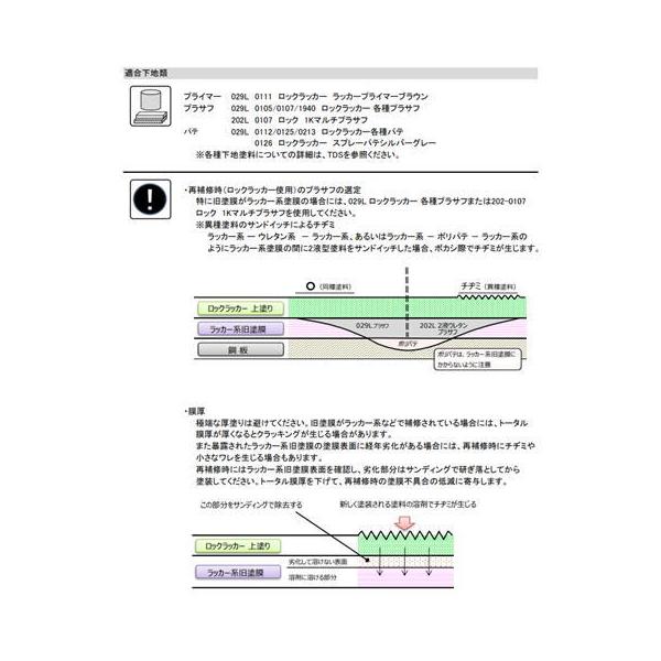 ラッカー系塗料で溶剤が強めな為、旧塗膜が耐候性の弱い塗料の場合ちぢれ等、侵される場合があります。