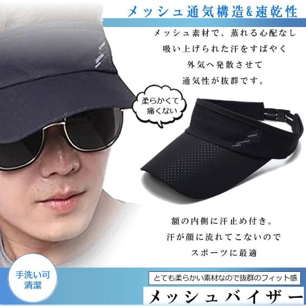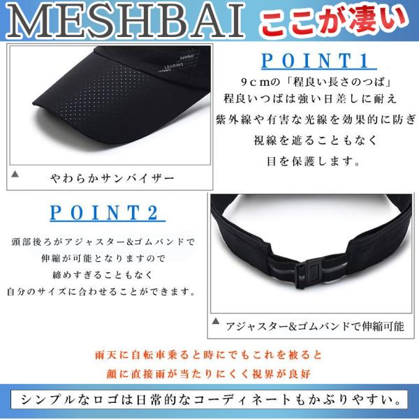 メッシュ サンバイザー メンズ レディース ゴルフ テニス スポーツ UV カット 紫外線 日焼け 防止 帽子 ランニング ウォーキング サイズ 調節 ゴム 伸縮 MESHBAI