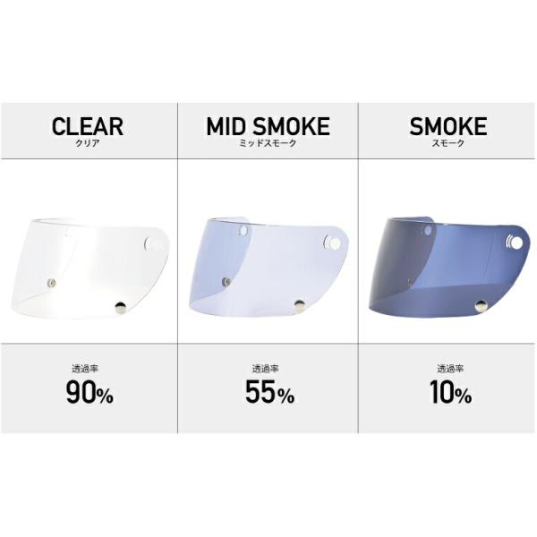 LEADのリバイバルヘルメット「RX-100R/RX-100R2/RX-300R/KLEIN」用リペア&オプションシールド。標準装備のクリアの他にミッドスモークとスモークの3色の設定となっております。