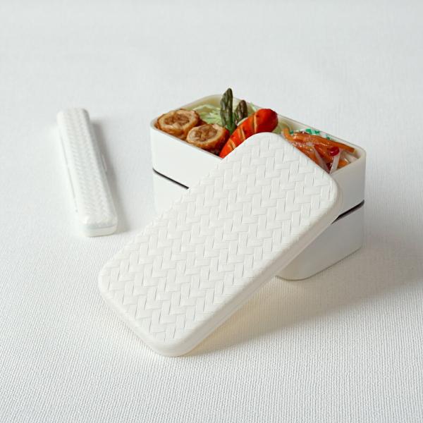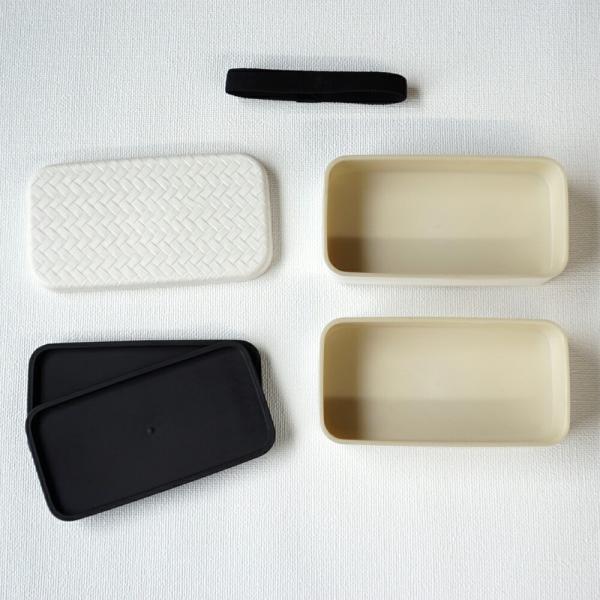お弁当箱 ランチボックス おしゃれ かわいい レンジ対応 食洗機対応 北欧 ランチボックス スリム モノトーン メンズ マットあじろ長角2段弁当箱 500ml