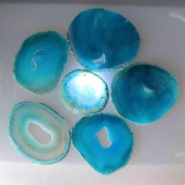 瑪瑙 アゲートプレート 青 ワンコイン 1枚 天然石 台座 飾り インテリア スライス パワーストーン アゲート ポリッシュ コースター カリグラフィー