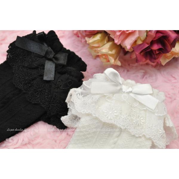 靴下 子供 ハイソックス レース フリル リボン 白 黒