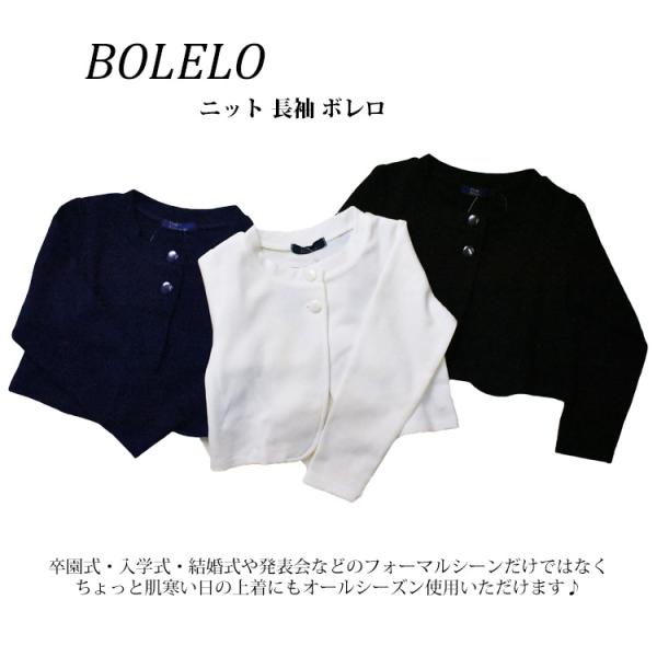 商品説明 長袖 無地 ニット ボレロ通園・通学や発表会・お受験・卒入学・冠婚葬祭に♪