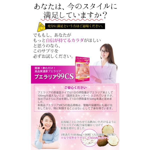 プエラリア 99CS プエラリアミリフィカ 高品質 高純度 胸 バスト ハリ ケア 女子力 アップ 美容 99粒 約99日分
