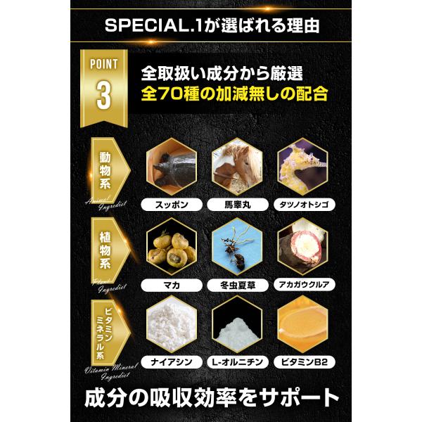 全70種独自の黄金比ブレンド。4つの特許取得成分を配合したサプリ「SPECIAL.1(スペシャルワン)」