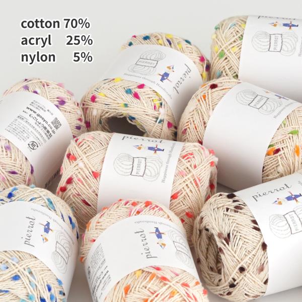生成り糸×カラフルぽんぽんが魅力コットン毛糸です