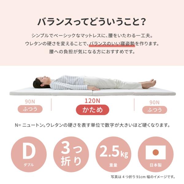 ダブル マットレス 三つ折り 腰痛 軽量 日本製 国産 来客用 ごろ寝 昼寝 コンパクト収納 敷布団 補助 寝具 硬め 約140×192×5cm