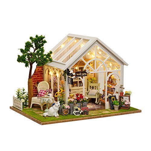 GutMai 1,066 view DIY木製ドールハウス、ねこと花の午後、手作りキットセット、ミニ家具工芸品キット、ミニチュアコレクション、LEDライト、オルゴール、クリスマスギフト、プレゼント、インテリア (ねこ花屋)