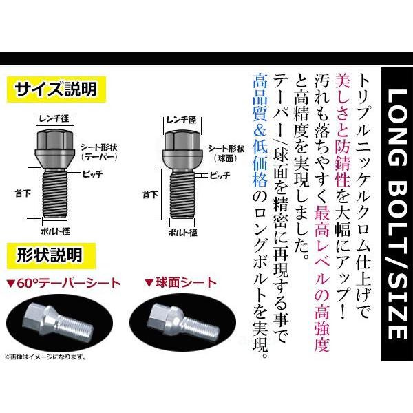 メルセデスベンツ アウディ BMW VW 輸入車用 ホイールボルト ラグボルト 1本 クロームメッキ M14 x P1.25 首下43mm 60°テーパー HEX17mm