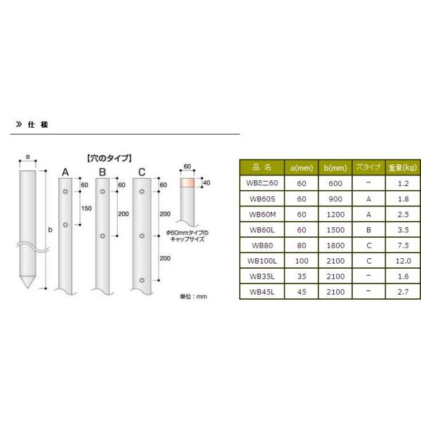 プラ丸杭 WB60L 60×1500mm の特徴