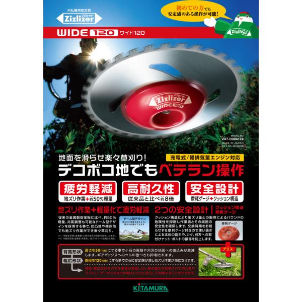 ジズライザー WIDE120 ワイド120 ZAT-H30A120 赤 安定板 草刈り機用部品 草刈 草刈り 除草 除草作業 刈払い機用 草刈機用 刈刃 北村製作所 三冨 DZ メール便