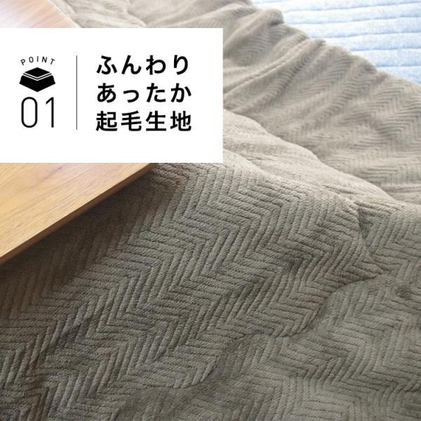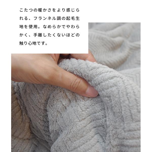 こたつの暖かさをより感じられる、フランネル調の起毛生地を使用。