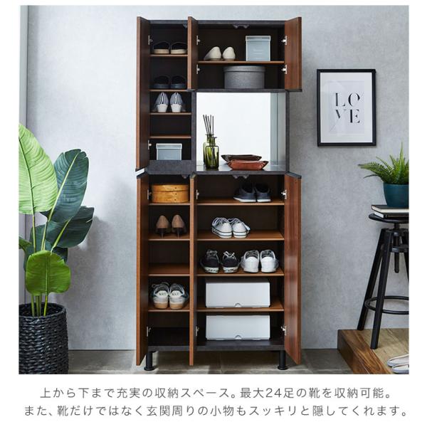 下駄箱 シューズボックス 靴箱 ハイタイプ 完成品 国産 スリム 薄型 幅74 モダン 北欧 ナチュラル 靴入れ 玄関収納 ミラー付き 鏡 おしゃれ 消臭