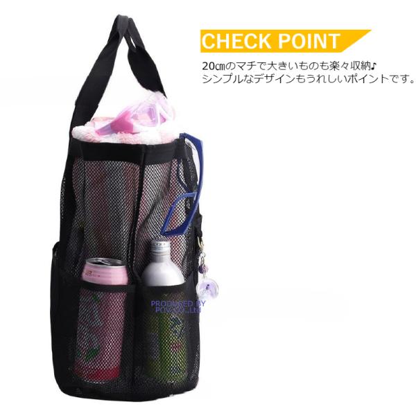 ●大きいバッグはアウトドアなどレジャーやお出かけ、お子様の遊び道具入れなど、様々なシーンで役立つメッシュバッグです。水切れがよく乾きやすいので、タオルやビーチサンダルを入れてプールや海水浴等夏のレジャーにも使いやすいバッグです。