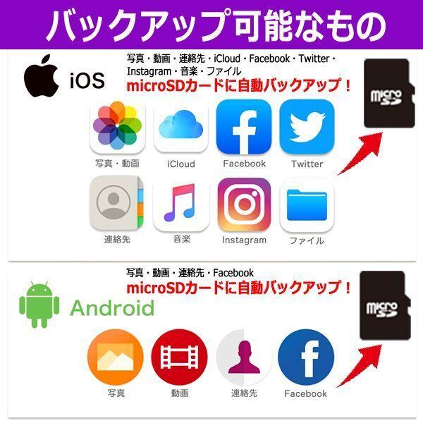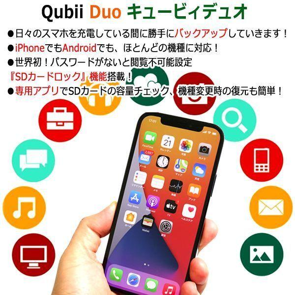 送料無料!スマホを充電するたびに自動バックアップ!iOS&Android対応キュービィデュオ+microSDカード64GB (カードリーダー Facebook Twitter Instagram)