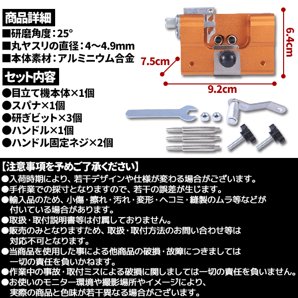 ※チェンソーの刃が互い違いになっている場合は、角度違いの穴に刺して刃を研磨してください【商品詳細】