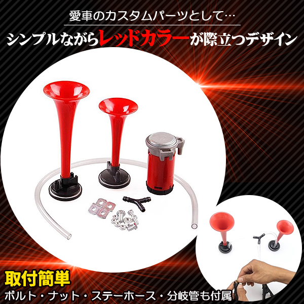 2連 コンプレッサー 付 迫力 フェラーリ 音 エアーホーン 2点 セット クラクション ヤンキーホーン カスタム パーツ