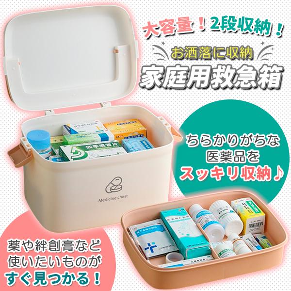 大容量!2段収納!お洒落に収納♪家庭用救急箱