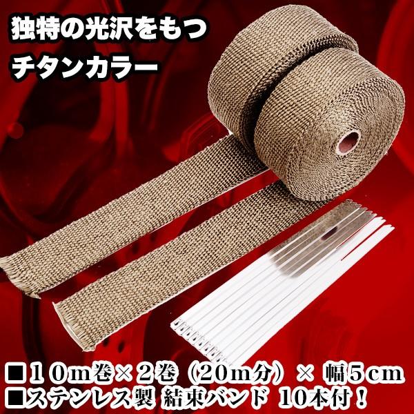 チタニウム 耐熱 バンテージ バンド 10本 付 長 20m 分×幅 5cm 性能アップ 排気系 チューン バイク マフラー チタン